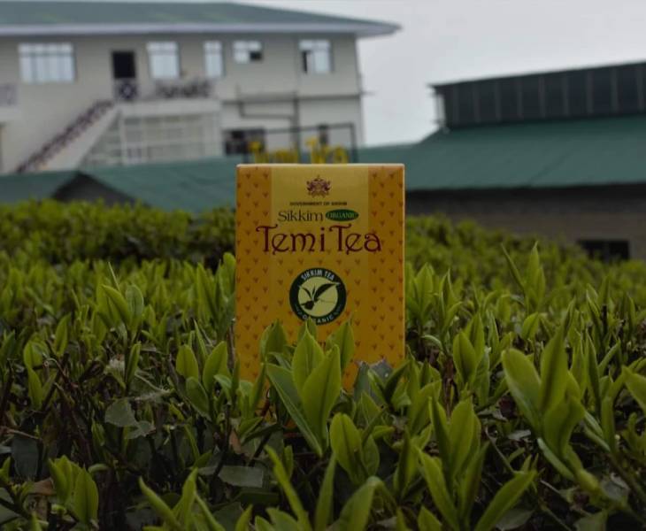 Temi Tea produces 1,00,000 kilograms of tea annually and the tantalizing first flush picking that bags the best price in the market is around 25,000 kilograms. Around 75 percent of the produce is sent to the auction center in Kolkata, while 25 percent is packaged for domestic sale. In 1997-98 the Temi Tea state has earned Rs. 86 lakh in revenues. The production from the garden is marketed in four separate categories in order of quality and value. The finest tea comes under the brand name the estate "Temi", in which the basic contents are purely the tea golden flowery orange pekoe #1 (TGOFP1). Next in line is the hugely popular brand, 'Solja'. Third in the order is, 'Sikkim', and then finally dust.